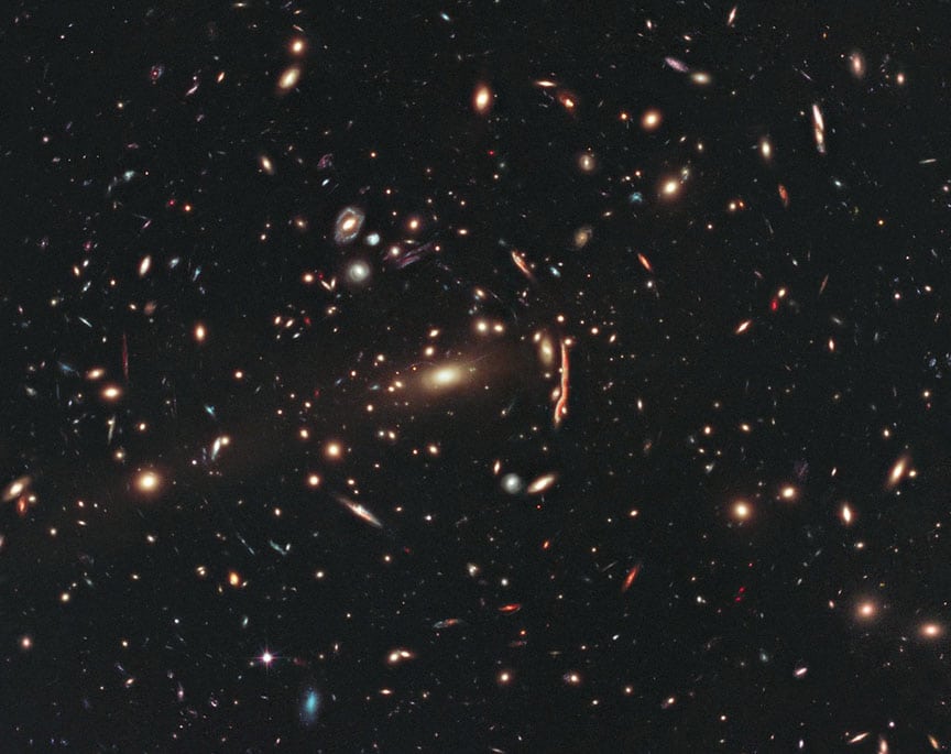 Ez a furcsa, ám mégis csodálatos Kozmikus Kígyó Galaxis valójában egy masszív galaxis klaszter mögött található, aminek a neve MACS J1206.2-0847, de a klaszter gravitációjának köszönhetően közvetlenül láthatjuk a Földről. A távoli galaxisból származó fény a Földre érkezik, miután a klaszter gigantikus gravitációs hatása torzítja azt.